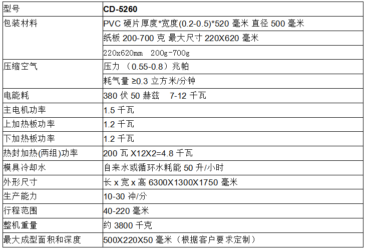 CD-5260 全自動(dòng)紙塑包裝機(jī)是我公司在DZP-500系列之后推出的新一代高效高產(chǎn)能設(shè)備。由泡殼成型機(jī),封口機(jī)組成,PLC系統(tǒng)同時(shí)操控,伺服電機(jī)驅(qū)動(dòng),故障率低,操作簡單。相比上一代設(shè)備,泡殼成型面積及深度大大提高。